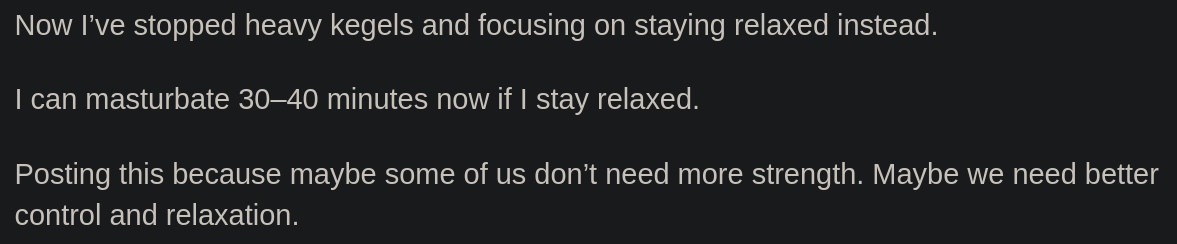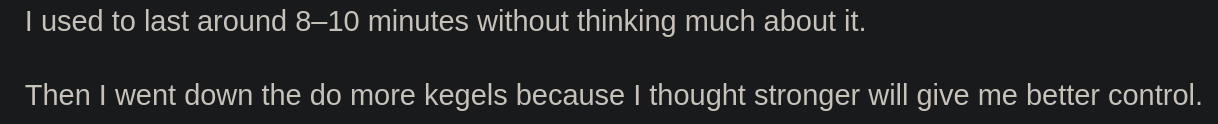 In my previous article about premature ejaculation, I mentioned that kegels are often used incorrectly, which can be counter-productive. Let’s break down a public testimony that illustrates this fact perfectly.